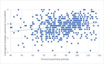Graf 2: Vzťah medzi copingovými stratégiami zameranými na problém a psychickou pohodou