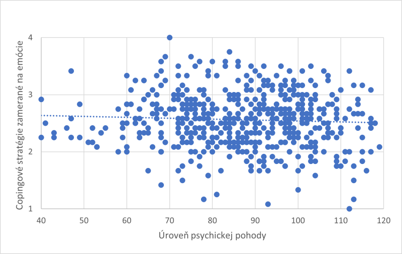 Graf 3: Vzťah medzi copingovými stratégiami zameranými na emócie a psychickou pohodou