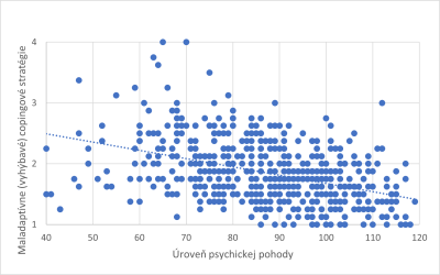 Graf 4: Vzťah medzi maladaptívnymi copingovými stratégiami a úrovňou psychickej pohody