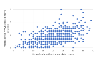 Graf 5: Vzťah medzi maladaptívnymi copingovými stratégiami a úrovňou vnímaného akademického stresu